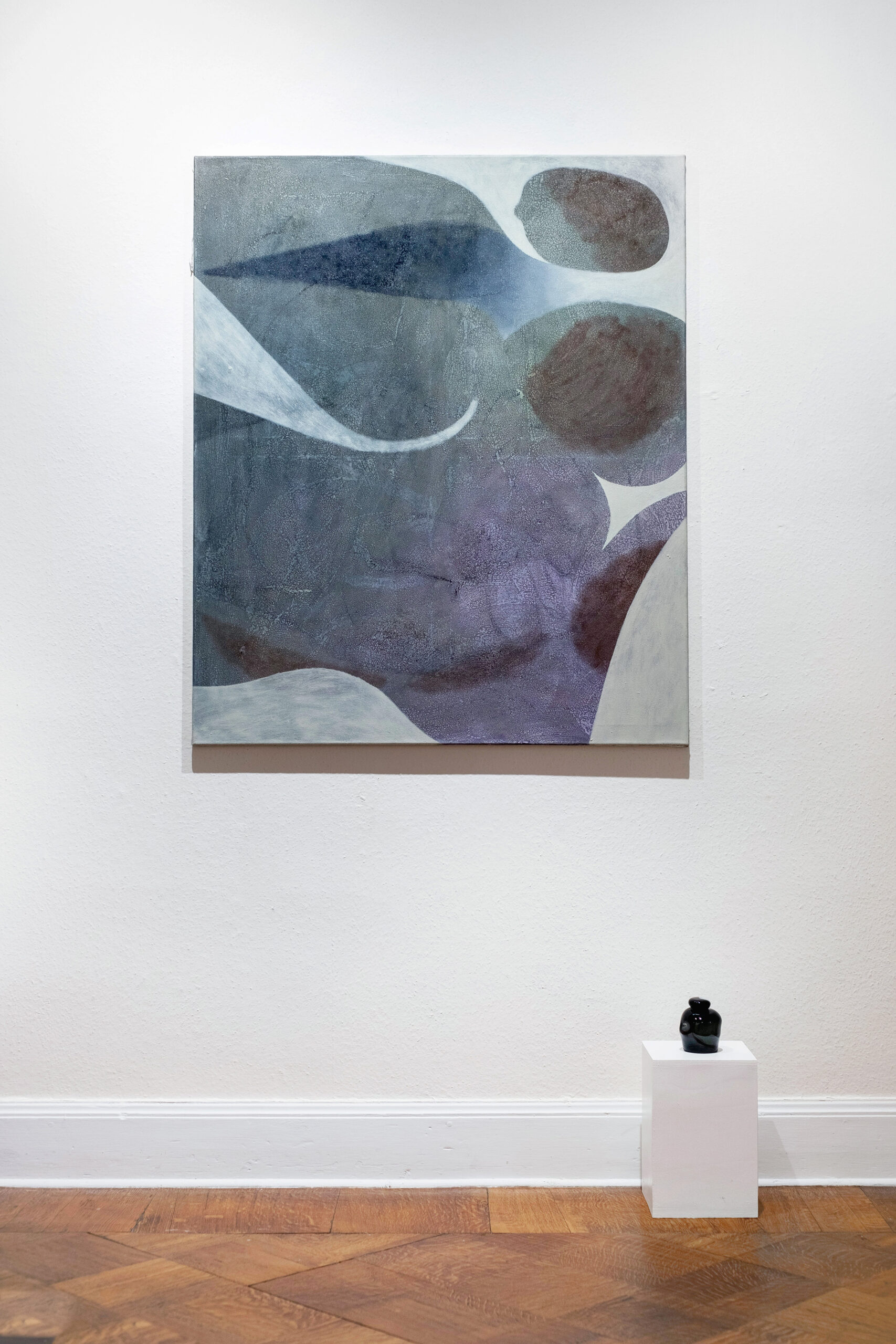 For the group exhibition at the Lindenau Museum in Altenburg i chose to display the vessels i had created in the glassblowing workshop alongside paintings from the previous year. These blown-glass pieces, enriched with material from reclaimed glass shards that i collected on Murano and melted and shaped through experiments with hot glass (in the evenings after factory work), formed a formal connection with the transitions and fluctuations of the surfaces in my paintings.